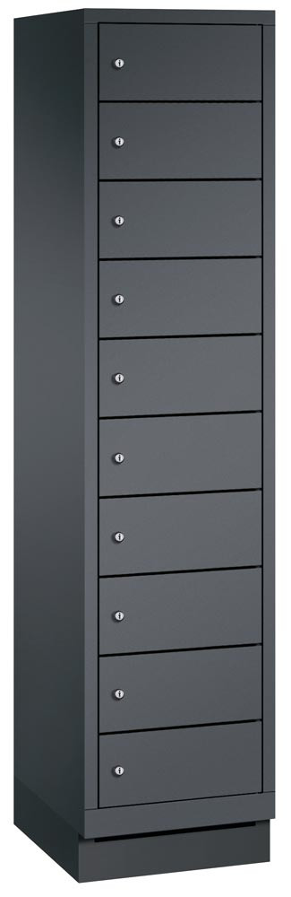 Laptopschrank, BxTxH 420x500x1800 mm, 10 Fächer, mit Sockel, RAL 7021 schwarzgrau