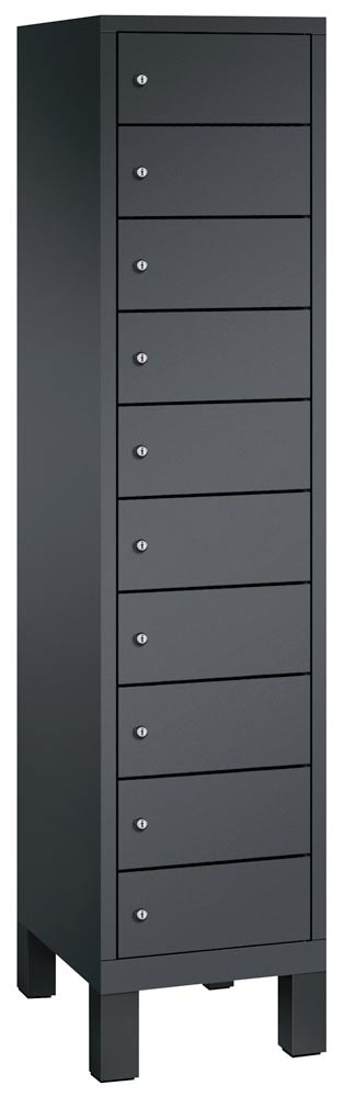 Laptopschrank, BxTxH 420x500x1800 mm, 10 Fächer, mit Sockel, RAL 7021 schwarzgrau E1987082