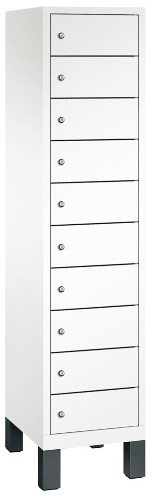 Laptopschrank, BxTxH 420x500x1850 mm, 10 Fächer, mit Füßen, RAL 9016 verkehrsweiß