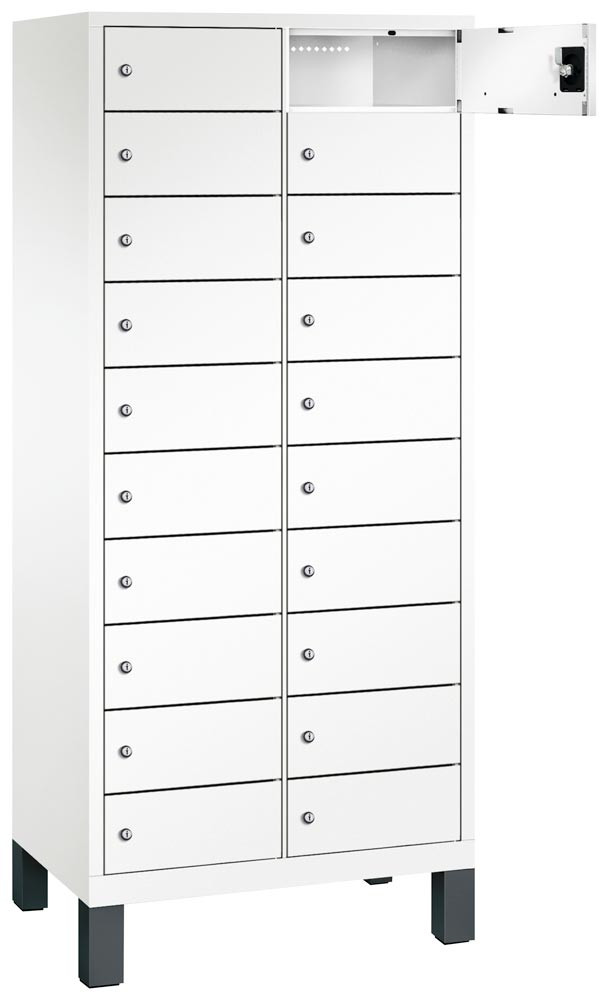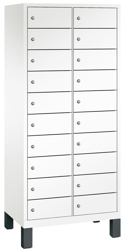 Laptopschrank, BxTxH 810x500x1850 mm, 20 Fächer, mit Füßen, RAL 9016 verkehrsweiß