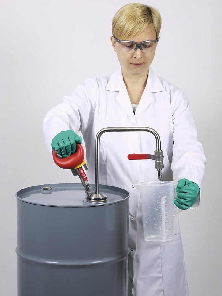 Lösemittel-Balgpumpe, Handbetrieb, Auslaufbogen, Förderleistung ca. 10 l/min, Eintauchtiefe 600 mm E815197