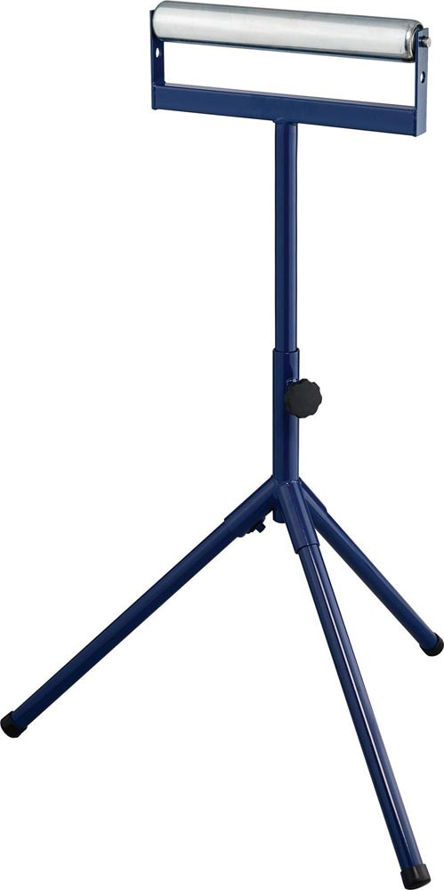 3-Fuß-Stahlrohrkonstruktion, blau lackiert · Stecksystem bei Montage der Füße · Tragrolle Stahl verzinkt Ø 50 x 1,5 mm · stufenlose Höhenverstellung · durch unterschiedliche Positionierung der Tragrolle mit oder ohne seitlichen Anschlag einsetzbar · Tragfähigkeit 100 kg