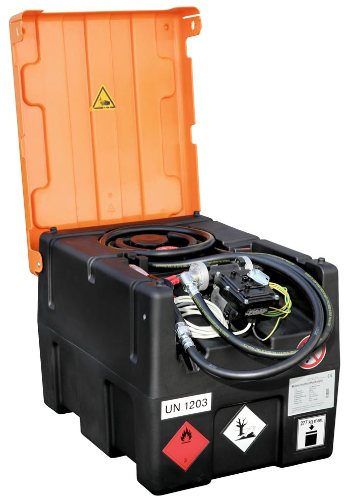 Mobile Benzintankstation, Volumen 190 l, mit Handpumpe, BxTxH 800x600x610 mm, Gewicht 28 kg, mit Klappdeckel E1982469