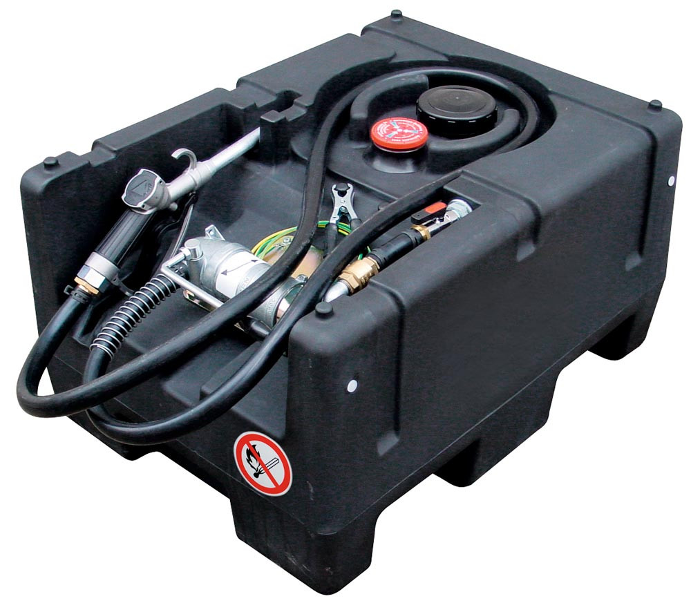 Mobile Benzintankstation, Vol. 120 l, Elektropumpe 12 V, 25 l/min, Zapfpistole, BxTxH 800x600x450 mm, Gewicht 33 kg E6423320