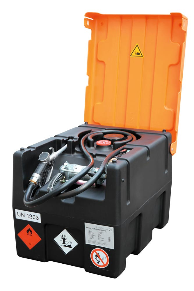 Mobile Benzintankstation, Volumen 190 l, mit Handpumpe, BxTxH 800x600x610 mm, Gewicht 28 kg, mit Klappdeckel E1982469