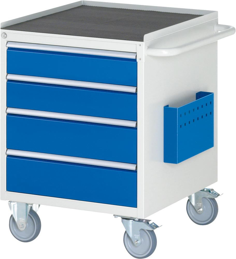 Montagewagen mit Metall Platte, BxTxH 580x650x795 mm, 4 Schubladen: 2x120/2x150 mm, RAL 7035/5010