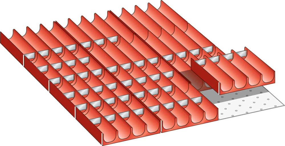 Mulden, Fronthöhe 50 mm, 12 Muldenteile 4-teilig, 50 Muldenwände 4-teilig, Schubladennutzgröße BxT 459x612 mm