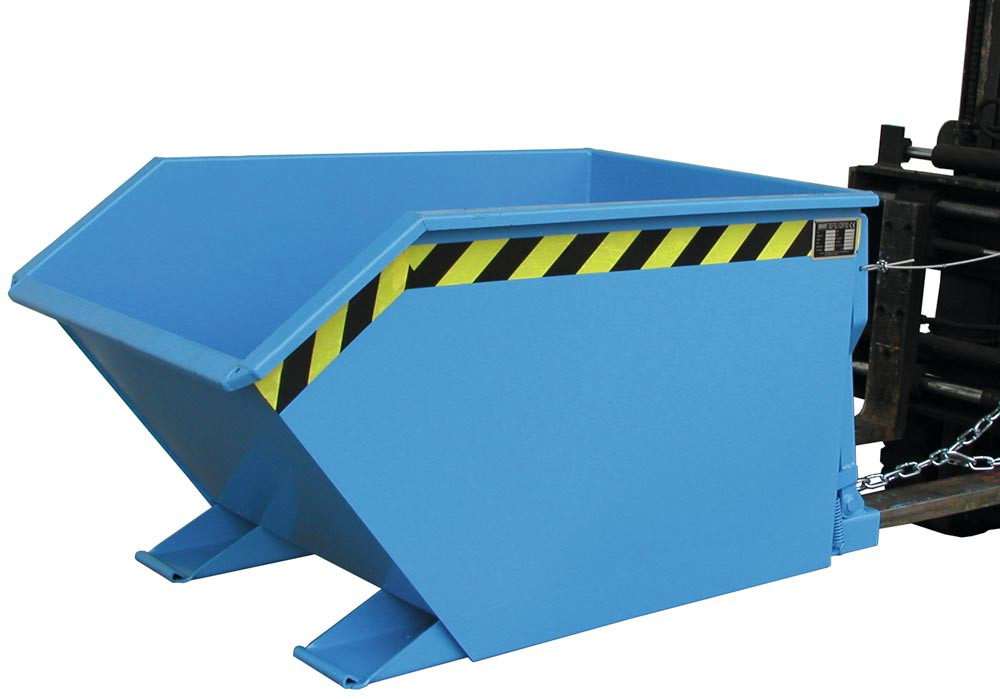 Mulden-Selbstkippbehälter, automatischer Aufrichter, Traglast 1000 kg, LxBxH 1440x780x680 mm, Vol. 0,50 cbm, RAL 5012 lichtblau