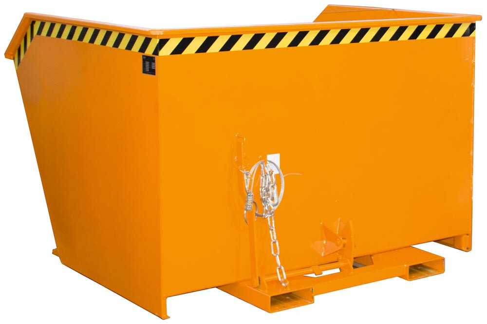 Mulden-Selbstkippbehälter, automatischer Aufrichter, Traglast 750 kg, LxBxH 1440x680x580 mm, Vol. 0,30 cbm, RAL 2000 gelborange E6410157