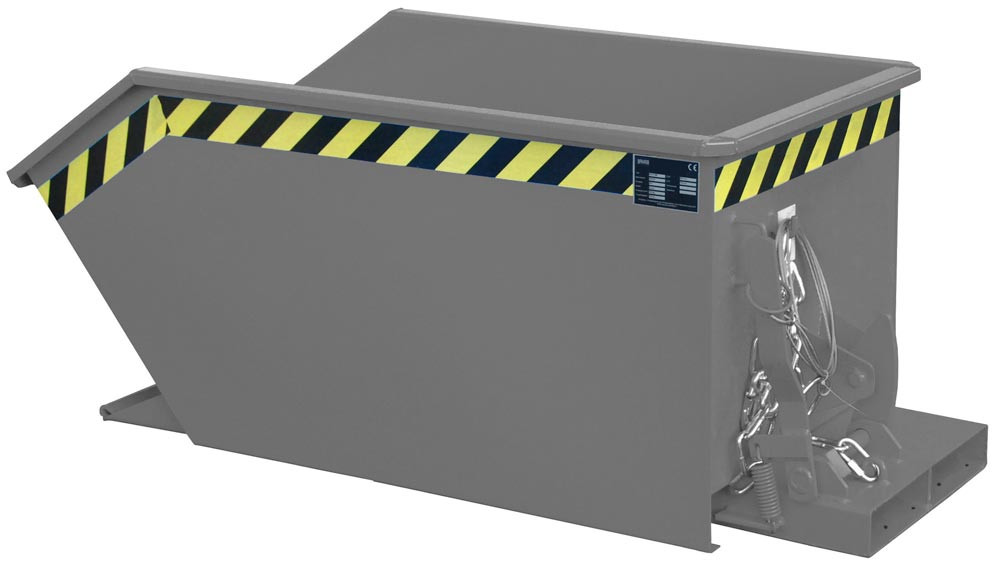 Mulden-Selbstkippbehälter, automatischer Aufrichter, Traglast 750 kg, LxBxH 1440x680x580 mm, Vol. 0,30 cbm, RAL 7005 mausgrau