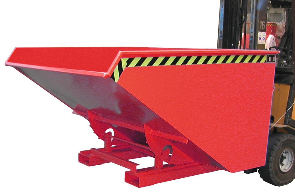 ∙ Mit Abrollsystem ∙ Mit kippbarer Mulde, 3 mm Wannenblech mit umlaufendem Randprofil ∙ Günstiger Lastschwerpunkt, Kippen in jeder Höhe per Seilzug ∙ Sicherung gegen unbeabsichtigtes Abrutschen und Auskippen ∙ Robuste Stahlblechkonstruktion ∙ Stabiler Grundrahmen mit Einfahrtaschen