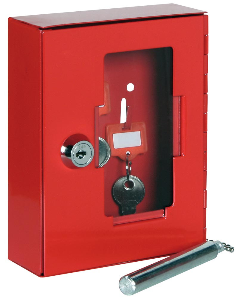 Notschlüsselkasten mit Klöppel, 2 Haken, auswechselbare Glasscheibe, Zylinderschloss, BxTxH 120x34x150 mm, rot E6469789