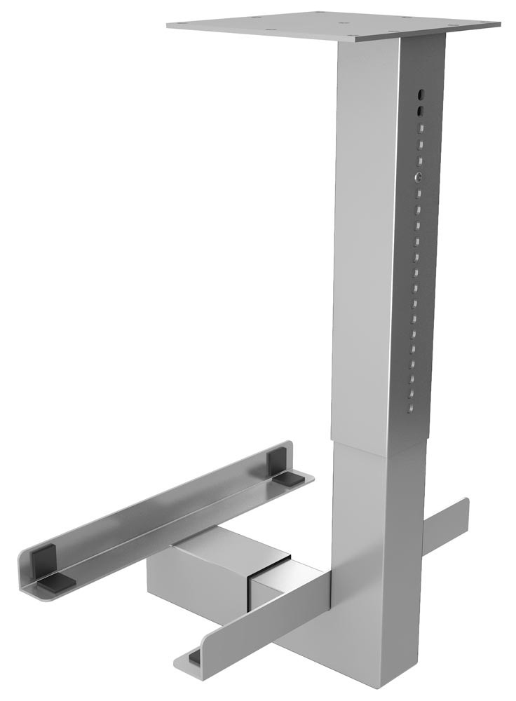 · Der PC-Halter kann an beliebiger Stelle unter die Tischplatte geschraubt werden · Nutzbreite 135-210 mm · Auflage 360 mm · Höhenverstellung 330-530 mm · Anschraubplatte 150 x 150 mm · Farbe silber · Moosgummi zum Schutz des PC liegt bei