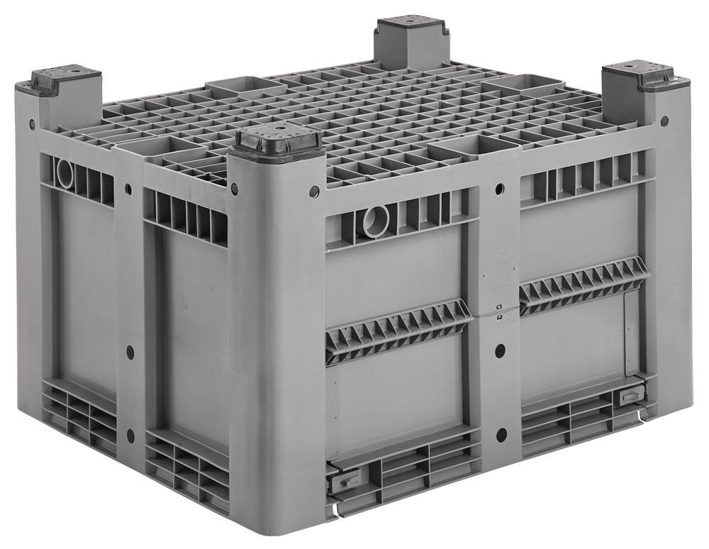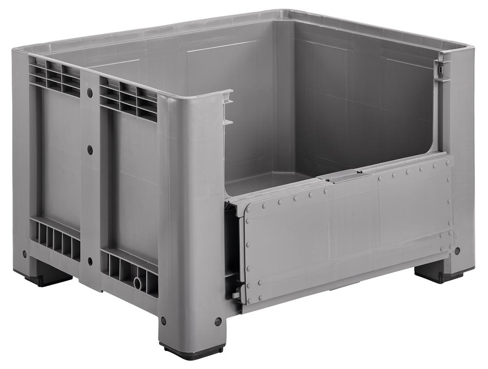Palettenbox, PE, BxTxH 1200x1000x760 mm, Volumen 610 l, Farbe grau, 4 Füße, Boden + Wände geschlossen, Seitenklappe