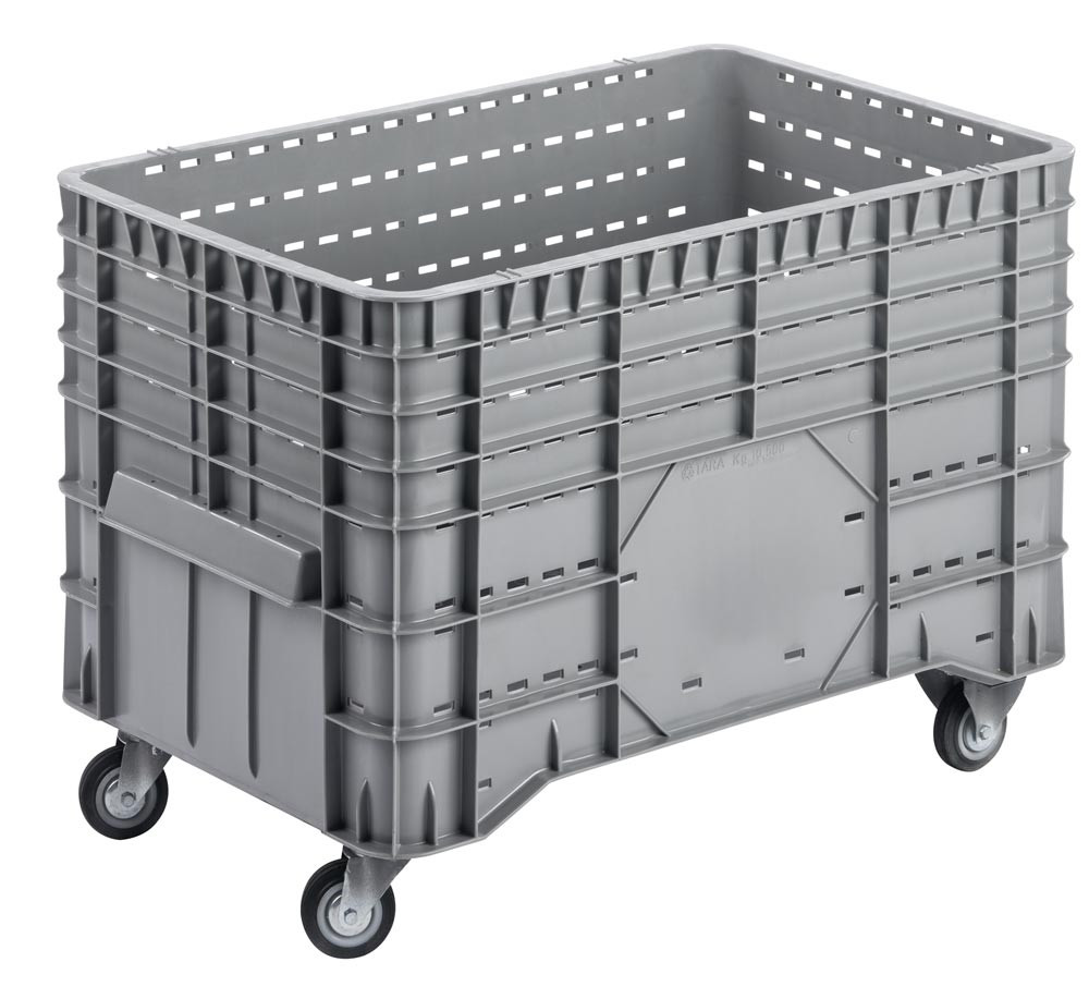 Palettenbox, Volumen 300 l, 4 Lenkräder, Farbe grau, Boden/Wände gelocht/durchbrochen, BxTxH 1020x640x700 mm, Traglast 120 kg dynamisch E1906440