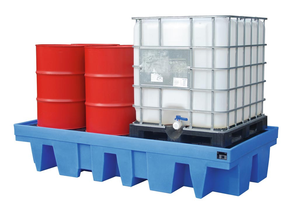 Auffangwanne aus PE, BxTxH 1350x2560x500 mm, für 2xKTC 1000 Liter, Auffangvolumen 1000 Liter, mit PE-Gitterrost E825926