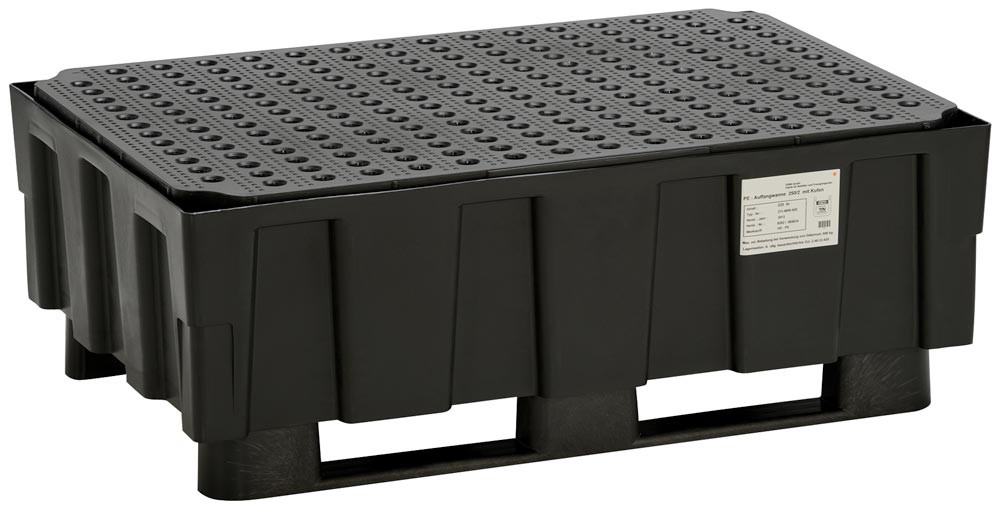 Polyethylen-Auffangwanne mit Kufen, mit PE-Lochblech, BxTxH 1205x805x440 mm, Vol. 224 l