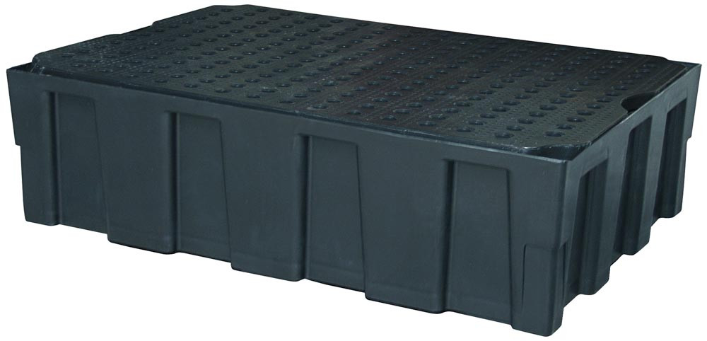 Polyethylen-Auffangwanne zum direkten Aufstellen auf den Boden oder Paletten, mit PE-Lochblech, BxTxH 1205x805x340 mm, Vol. 224 l E813152