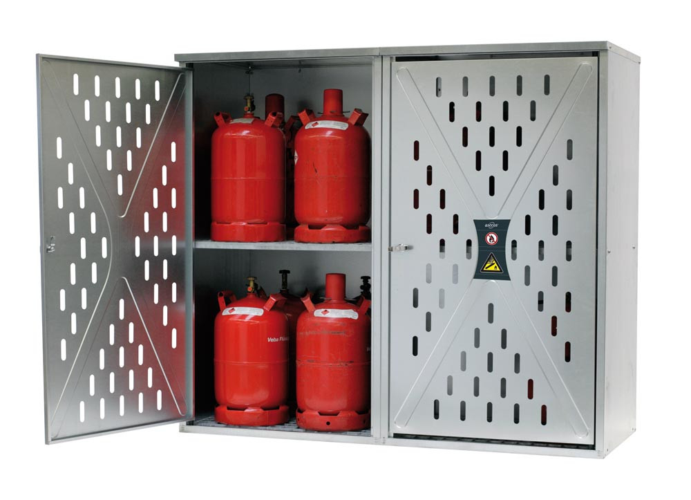 Propangasflaschen-Schrank, verzinkt, mit gelochten Front- und Seitenwänden, mit 2-flügeliger Tür, BxTxH 1680x690x1500 mm E811871