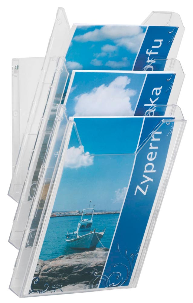 Prospekthalter für Tischaufstellung oder Wandanbringung, 3 Fächer DIN A4, Fülltiefe 24 mm, BxTxH 242x217x291 mm, VE 1 St., Mindestbestellmenge 3 Stück