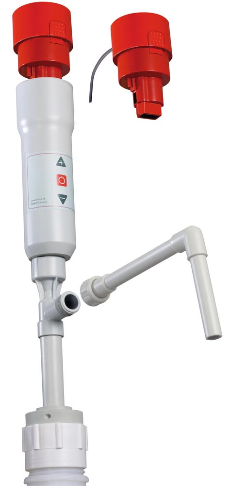 ∙ Fasspumpe mit einzigartigem Hybrid-System ∙ Hergestellt nach CE-Richtlinien · Schnelles und effizientes Abfüllen durch zwei unterschiedliche Stromversorgungssysteme ∙ Hohe chemische Beständigkeit der mediumsberührenden Werkstoffe (PP, PTFE, Hastelloy C) · Beide Versorgungseinheiten sind auf den Antrieben untereinander tauschbar ∙ Somit kann mit einem Antrieb an mehreren stationären Pumpwerken abgefüllt werden · Fassverschraubungen nicht im Lieferumfang enthalten, bitte separat bestellen
