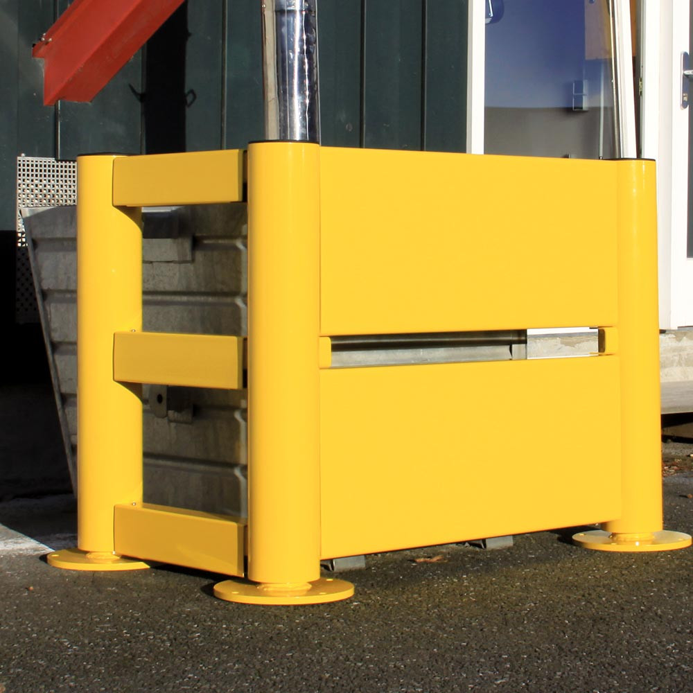 Rammschutz-Geländer, T-Pfosten, Durchm. 160 mm, RAL 1003 signalgelb, zum Aufdübeln, Inkl. Montagematerial