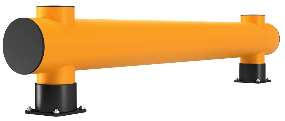 Rammschutzbarriere, Einzelplanke, HDPE, Länge 4000 mm, Höhe 390 mm, Pollerdurchm. 140 mm, Verbindungsrohrdurchm. 200 mm, Farbe gelb
