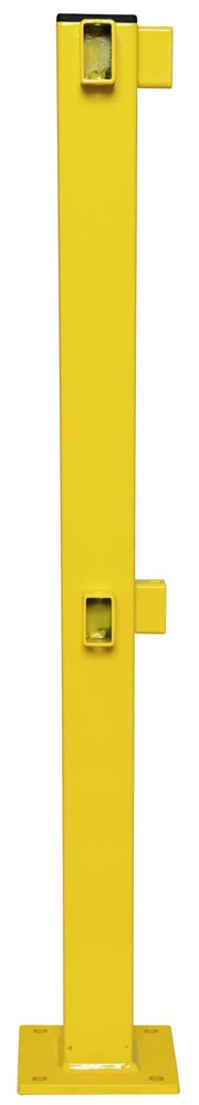 Rammschutzgeländer, Standpfosten für Anfang und Ende, 70x70 mm, Höhe 1000 mm, gelb kunststoffbeschichtet E6010788