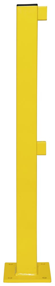 Rammschutzgeländer, Standpfosten für Anfang und Ende, 70x70 mm, Höhe 1000 mm, gelb kunststoffbeschichtet