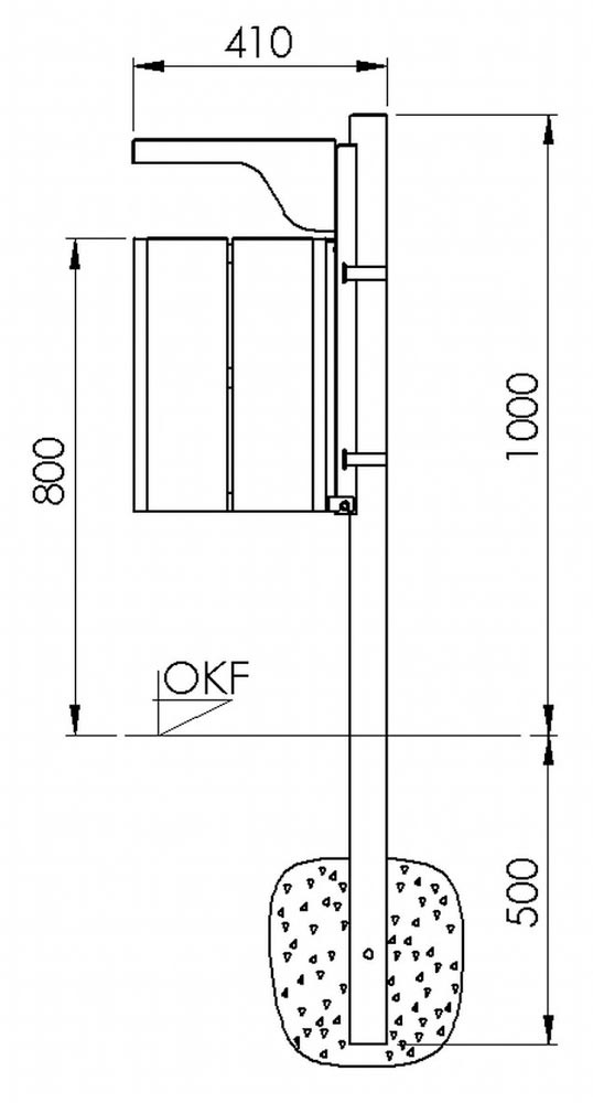 ∙ Stahlblech feuerverzinkt ∙ Eingrifföffnung zum besseren Handling ∙ Gelochter Boden zum Wasserablauf ∙ Einschließlich Universalhalterung zur Anbringung an Mauerwerk, Pfosten oder Lichtmasten