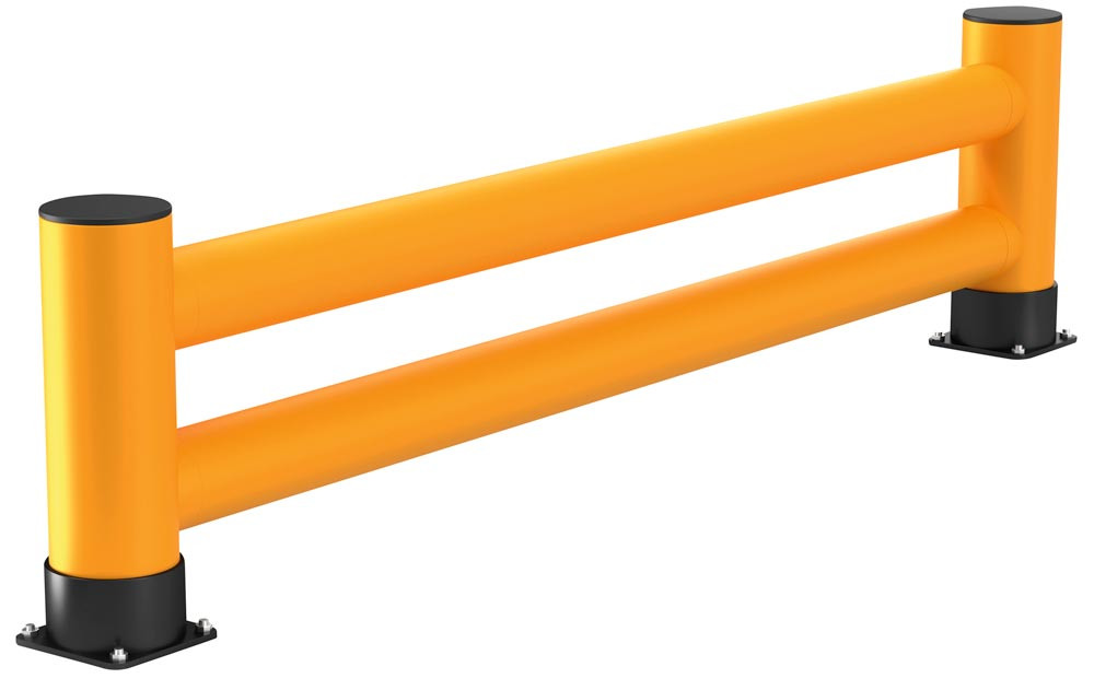 Regalendschutz, Doppelplanke, HDPE, Länge 2500 mm, Höhe 600 mm, Pollerdurchm. 180 mm, Verbindungsrohrdurchm. 140 mm, Farbe gelb