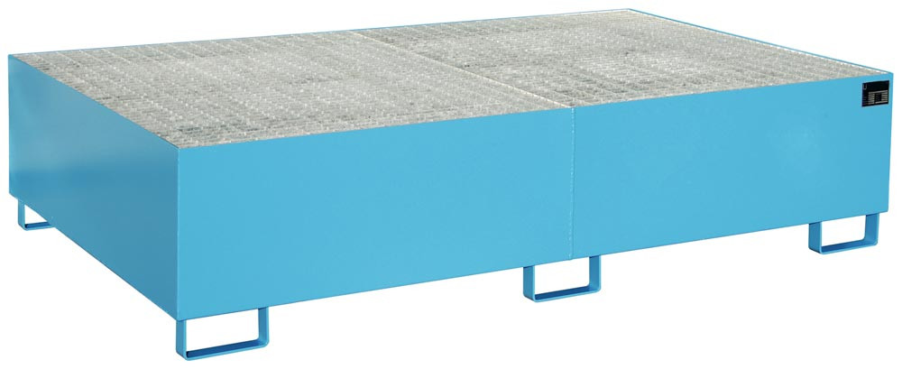 Regalwanne f. Trägerlänge 2200 mm, m. verz. Gitterrost, BxTxH 2150x1300x225 mm, Volumen 240 l, RAL 5012 E1987196