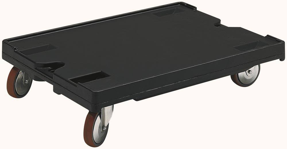 ∙ Abmessung 800 x 600 mm für das einfache Verfahren von Behältern ∙ Mit umlaufendem Rand für festen Halt ∙ 2 Lenk- und 2 Bockrollen, Ø 125 mm bis 500 kg belastbar