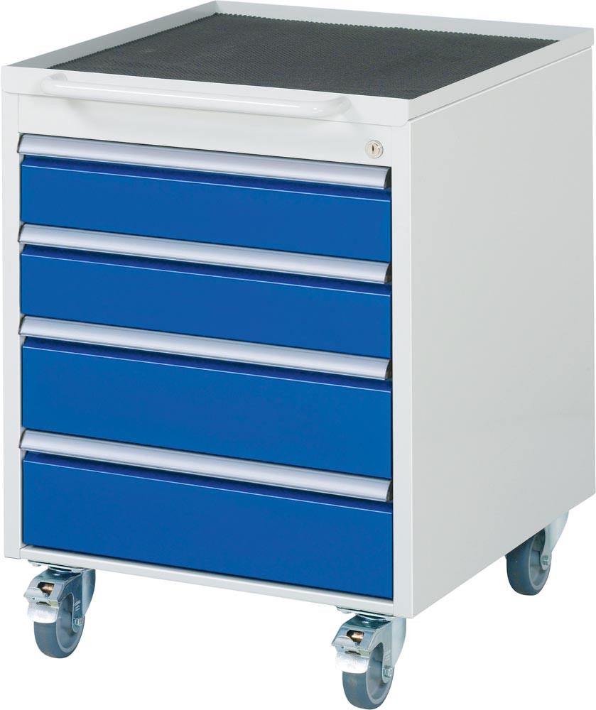 Rollschrank, Höhe 745 mm, BxT 580x650 mm, 4 Schubladen: 2x120 mm, 2x150 mm, RAL 7035/5010