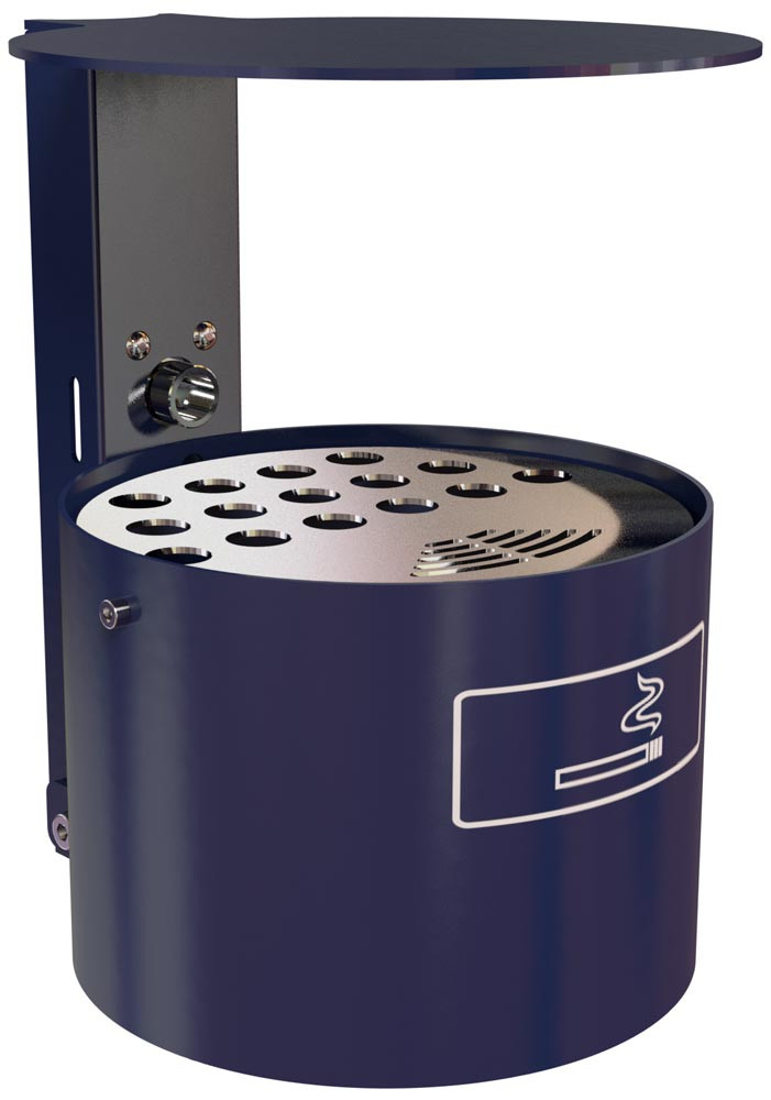 Rundascher, Wand+Pfostenbef., inkl. Schiene, Vol. 4 l, Durchm. 200 mm, H 290 mm, inkl. Abdeckhaube, pulverbesch. RAL 5013 kobaltblau
