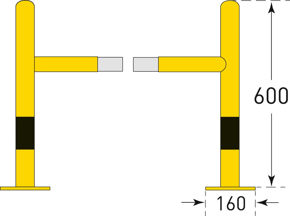 Säulenschutz, Rohrbügel 60 mm, Strebe 48 mm, feuerverzinkt, gelb beschichtet, schwarzen Streifen, BxTxH 520x520x600 mm, mit Bodenplatte z. Aufdübeln E1985182