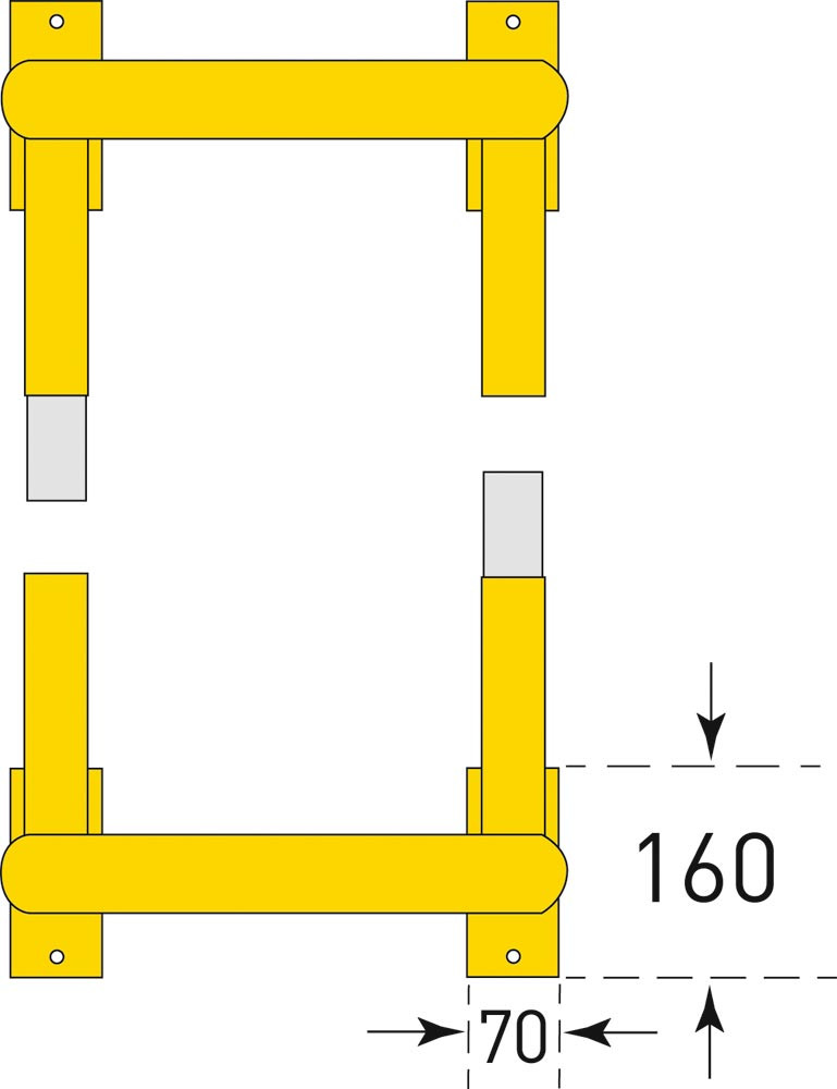 · Optimaler Rundumschutz vor Anfahrschäden für Säulen, Pfosten, Pfeiler und Masten · Zweiteilige Rohrkonstruktion aus Rundbögen Ø 60 mm und Querstreben Ø 48 mm · Wandstärke 2 mm · Einfaches Ineinanderschieben beider Querstreben zu einer stabilen Einheit · 4 Bodenplatten zum Aufdübeln 160 x 70 x 5 mm