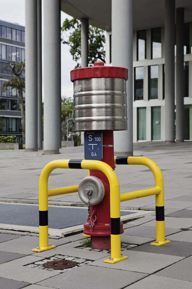 Säulenschutz, Rohrbügel 60 mm, Strebe 48 mm, feuerverzinkt, gelb beschichtet, schwarze Streifen, BxTxH 620x620x600 mm, mit Bodenplatte z. Aufdübeln E1985184