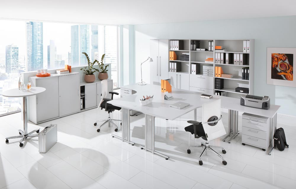 ∙ Säulenhubtische, mit Gasdruckfeder, höhenverstellbar ∙ Tischplattenstärke 25 mm mit umlaufender, 2 mm starker, gerundeter Kunststoffkante ∙ Grundsätzlich mit Gleitern und 3 ungebremsten sowie 2 gebremsten Rollen zum Aufstecken