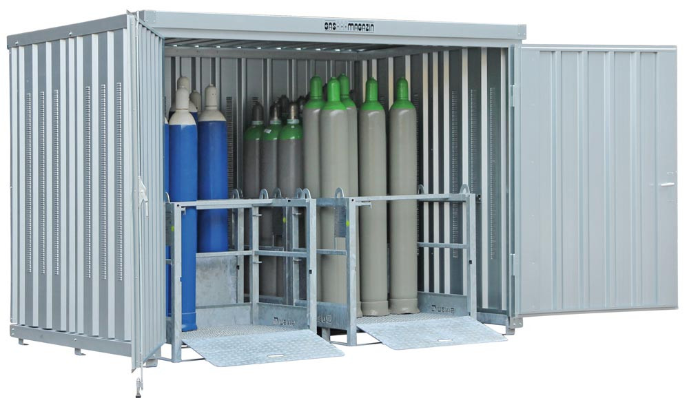 Safe-Gasmagazin, Verzinkt, ohne Boden, BxTxH 3020x2175x2175 mm, montiert, Kapazität 66 Flaschen 50 l