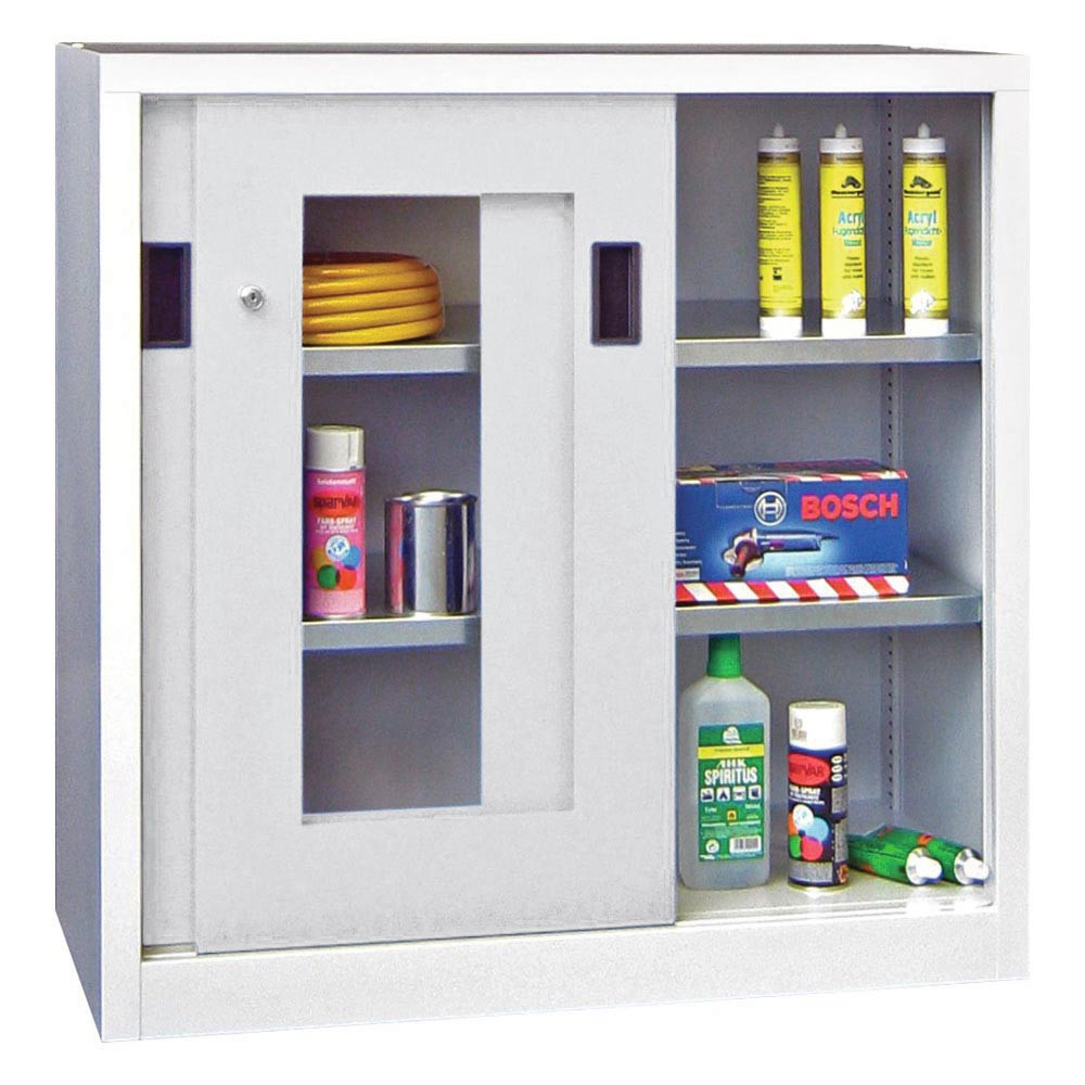 Schiebetürenschrank, Sichtfenstertüren, 2 verzinkte Böden, ohne Trennwand, BxTxH 1000x400x1000 mm, RAL 7035/3000 E875305