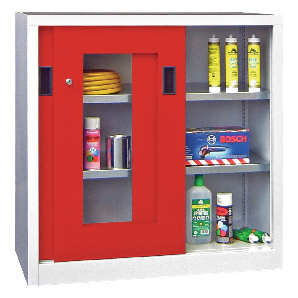Schiebetürenschrank, Sichtfenstertüren, 2 verzinkte Böden, ohne Trennwand, BxTxH 1000x400x1000 mm, RAL 7035/3000 E875305