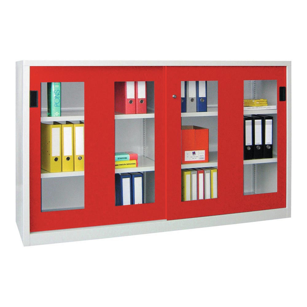 Schiebetürenschrank, Sichtfenstertüren, 2 verzinkte Böden, ohne Trennwand, BxTxH 1000x500x1200 mm, RAL 5010 E875453