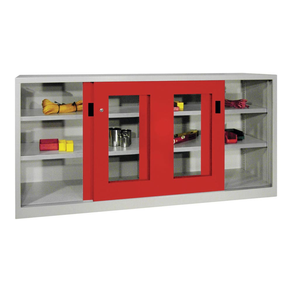 Schiebetürenschrank, Sichtfenstertüren, 2 verzinkte Böden, ohne Trennwand, BxTxH 1000x400x1000 mm, RAL 7035/3000 E875305