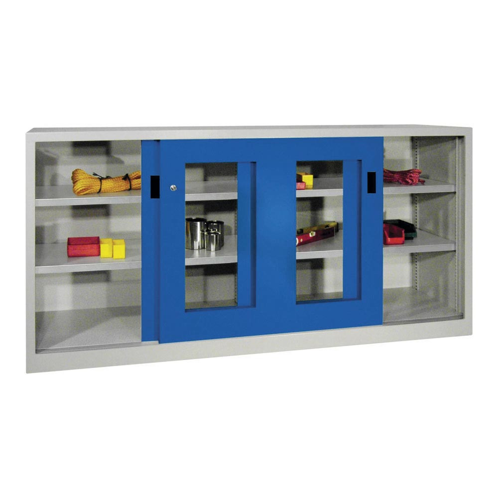 Schiebetürenschrank, Sichtfenstertüren, 2 verzinkte Böden, ohne Trennwand, BxTxH 1000x400x1000 mm, RAL 5010 E875301