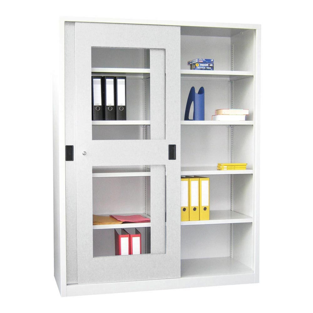 Schiebetürenschrank, Sichtfenstertüren, 4 verzinkte Böden, ohne Trennwand, BxTxH 1000x400x1950 mm, RAL 7035 E875592