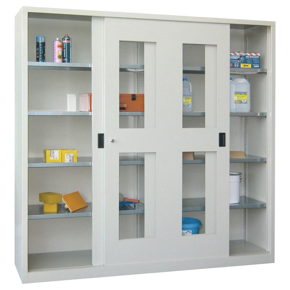 Schiebetürenschrank, Sichtfenstertüren, 4 verzinkte Böden, ohne Trennwand, BxTxH 1000x400x1950 mm, RAL 7035/3000 E875593