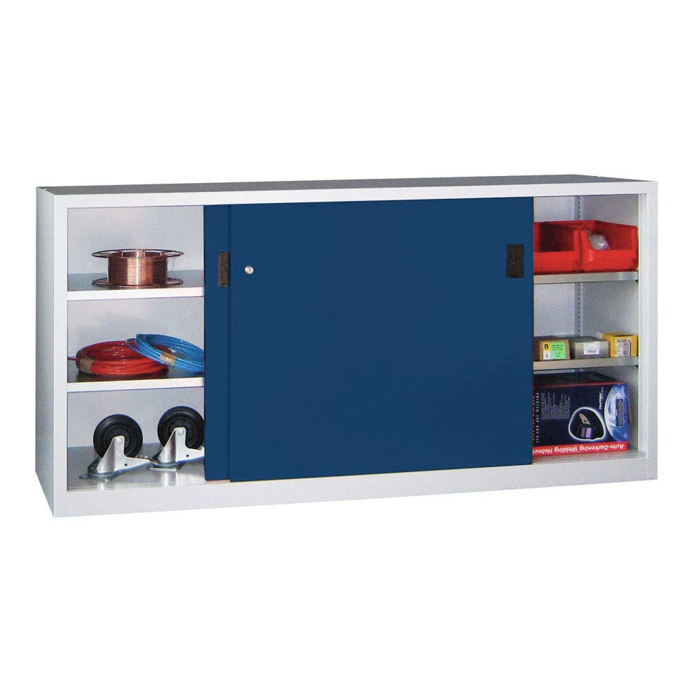 Schiebetürenschrank, Vollblechtüren, 2 verzinkte Böden, ohne Trennwand, BxTxH 1000x400x1000 mm, RAL 5010 E875733