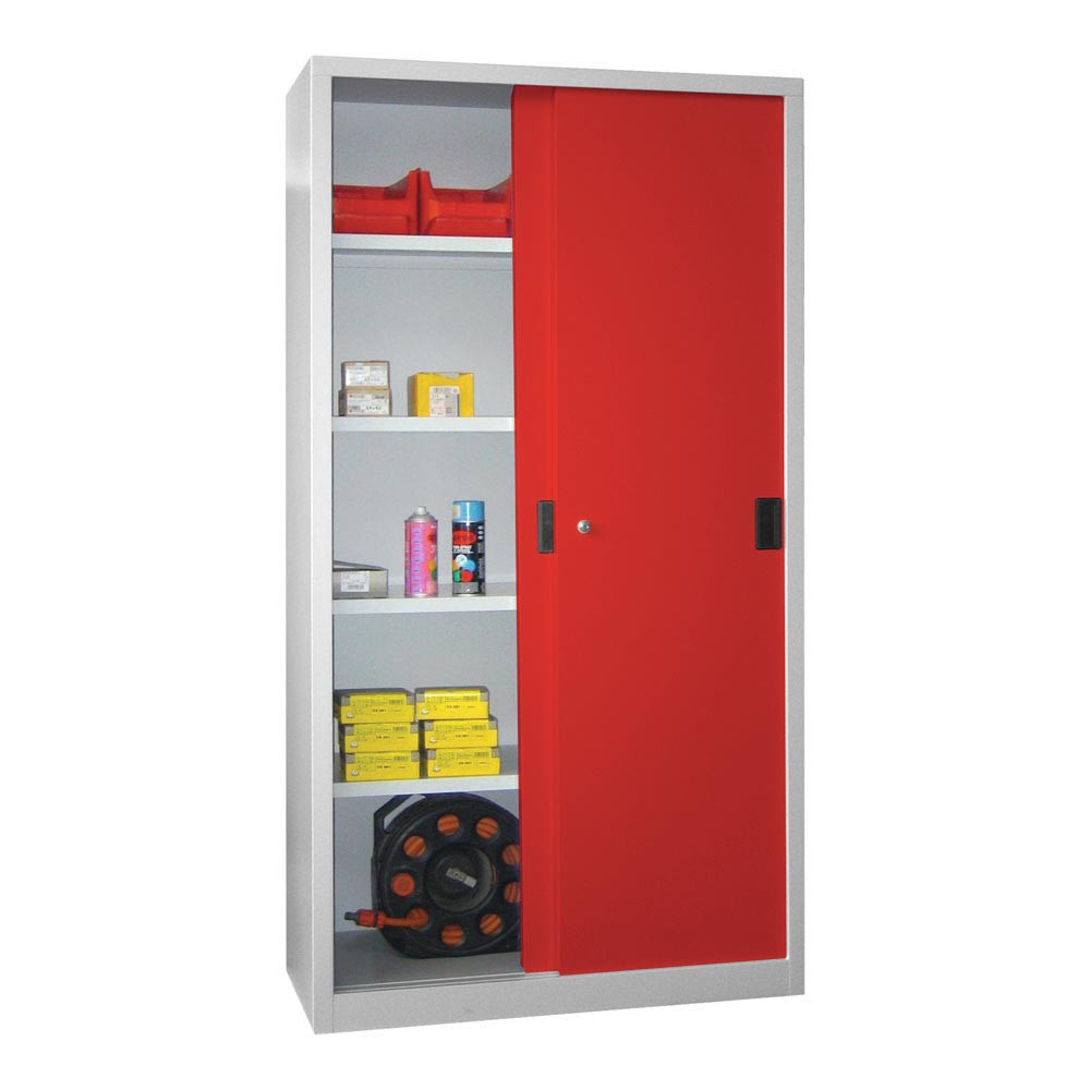 Schiebetürenschrank, Vollblechtüren, 4 verzinkte Böden, ohne Trennwand, BxTxH 1000x500x1950 mm, RAL 5010 E875885