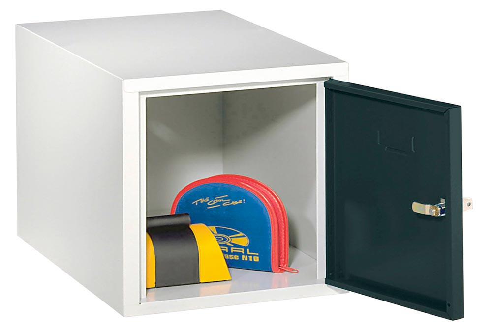 Schließfachwürfel, BxTxH 400x500x380 mm, Tür glatt, Etikettenrahmen, Zylinderschloss, geeignet für Motorradhelme, RAL 7035/9005 E841188